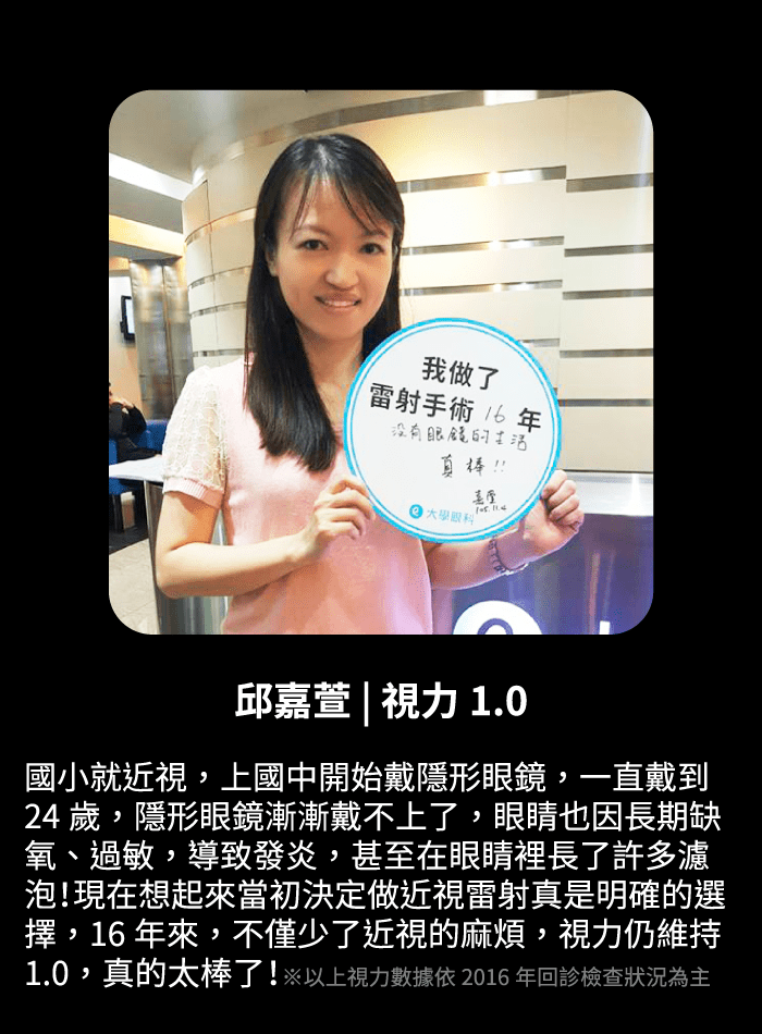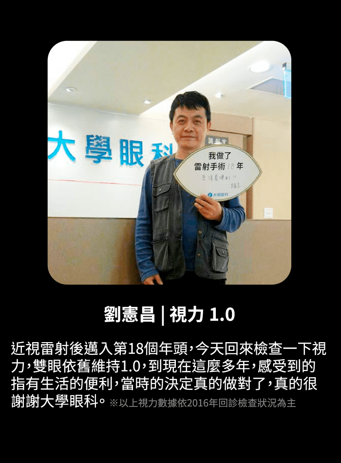 | 2015年 | transPRK 表層手術 | 使用雷射處理角膜上皮層,再用準分子雷射矯正度數 |