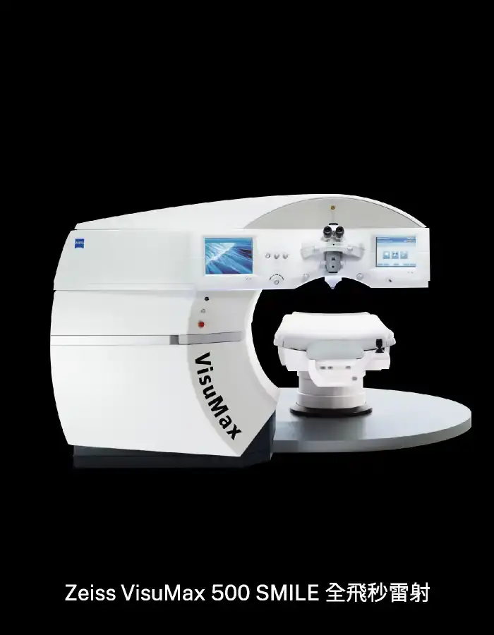 SMILE全飛秒近視雷射:「SMILE全飛秒」全名為SMall Incision Lenticule Extraction「微創角膜透鏡取出」,利用全飛秒雷射在角膜表面下方掃瞄出如隱形眼鏡般超薄的「角膜透鏡」,醫師將依個人狀況客製化角膜透鏡的大小與厚度,透過微小切口取出,改變角膜弧度,改善近視的突出角膜或散光的不規則角膜,使光線正確聚焦於視網膜,而達到矯正近視與散光,並保持角膜表面完整性,縮短角膜與視力的恢復期,同時維持角膜與視力的穩定度。SMILE系列手術自2011上市,因設備及軟體升級持續推出SMILE Pro、SMILE Pro 2.0;2026由大學眼科在SMILE 平台推出獨有SMILE Pro 3.0 Max。