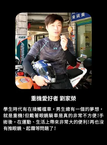 | 矯正一週後可從事較輕微的運動(高爾夫、跑等),一個月後可從事足球、棒球、游泳、潛水等。 | |||