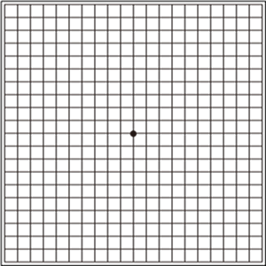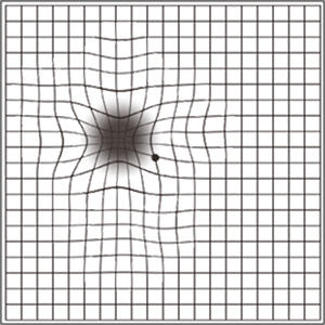 用手輕輕遮住其中一眼,另一眼凝視方格表中心黑點,用眼睛餘光測試;若發現方格表出現陰影遮掩,或線條有中斷或扭曲現象,就可能是眼底病變的徵兆,請盡快至本院做詳細檢查。 - STEP 4