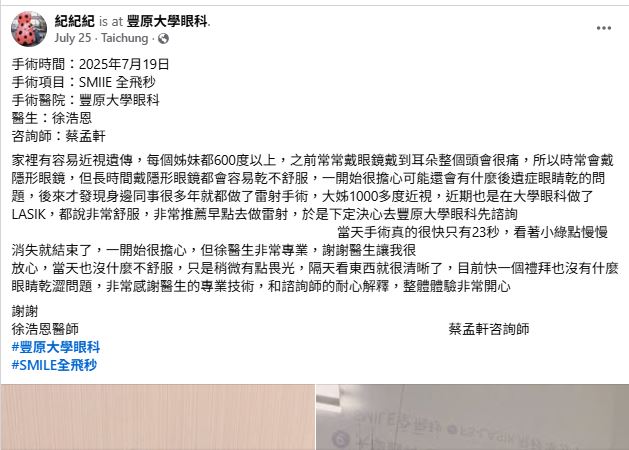 ...紀彩琪的近視雷射推薦 - 豐原大學眼科診所