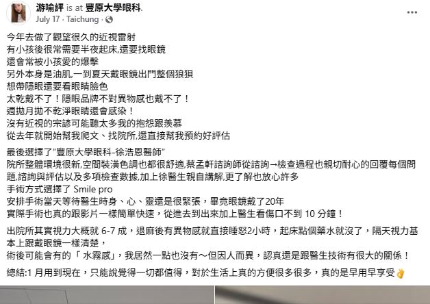 ...游喻評的近視雷射推薦 - 豐原大學眼科診所