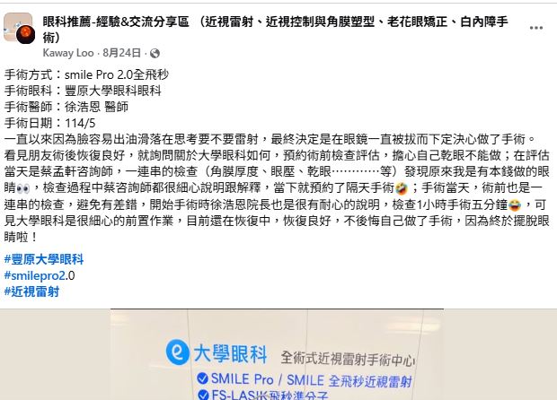 ...湯思嘉的近視雷射推薦 - 豐原大學眼科診所