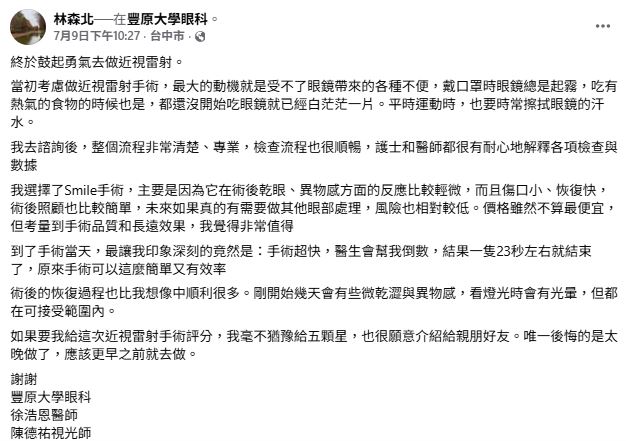 ...黃賢章的近視雷射推薦 - 豐原大學眼科診所