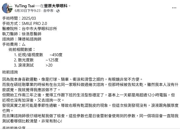 ...蔡侑廷的近視雷射推薦 - 豐原大學眼科診所
