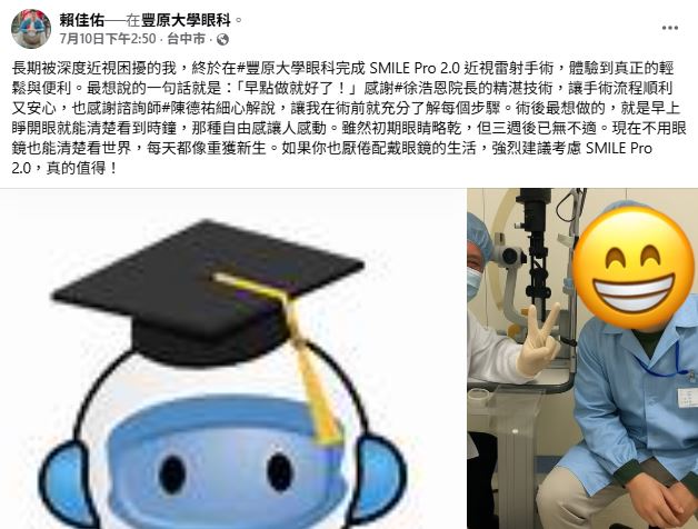 ...賴佳佑的近視雷射推薦 - 豐原大學眼科診所
